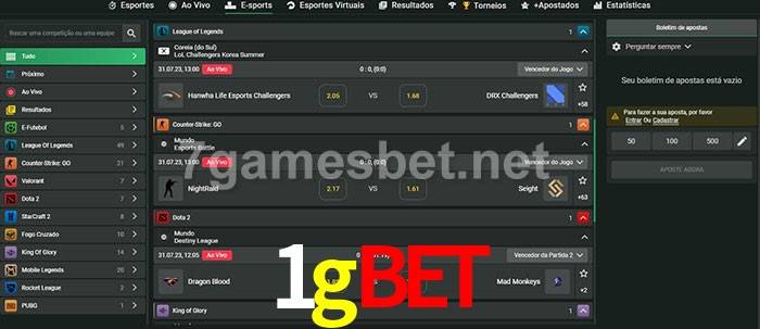 O 1gbet oferece uma grande seleção de opções de apostas em e-sports com probabilidades competitivas